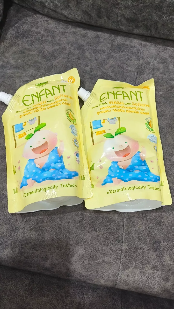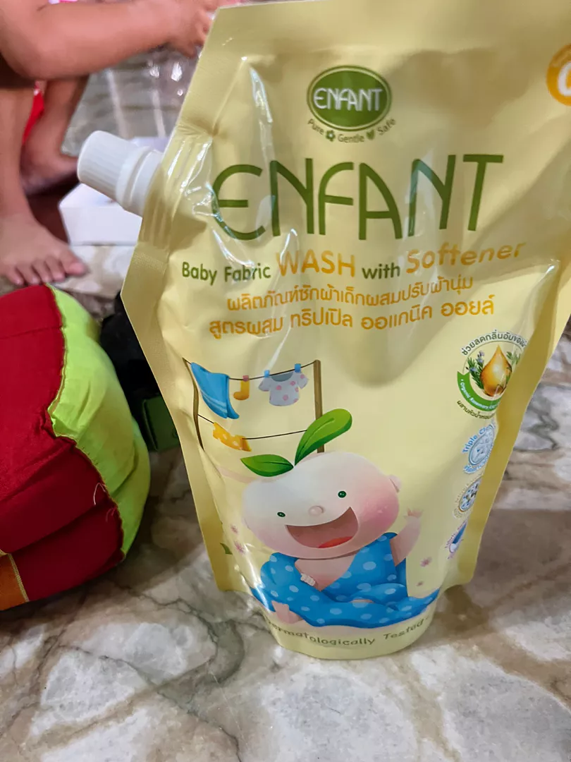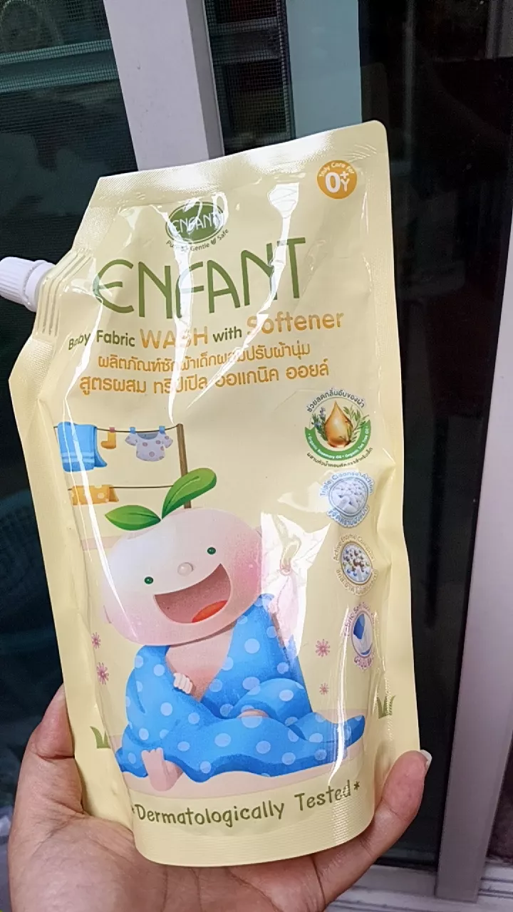 อองฟองต์ เบบี้ แฟบริค วอช วิธ ซอฟเทนเนอร์ สีเหลือง ผลิตภัณฑ์ซักผ้าเด็กสูตร pH Balance ผสมสารธรรมชาติจาก ออแกนิค ทีทรีออยล์, ออแกนิคโรสแมรี่ออยล์ และ ออแกนิคซันฟลาวเวอร์ออยล์ ช่วยทำความสะอาดคราบฝังแน่นด้วย Triple Cleanse Action พร้อมปรับผ้านุ่มในขั้นตอนเดียว เหมาะสำหรับซักผ้าอ้อม เสื้อผ้าลูกน้อย หรือผ้าที่ต้องการถนอมเป็นพิเศษ สูตรนี้มีกลิ่นหอมละมุน อ่อนโยนต่อผิวลูกน้อย