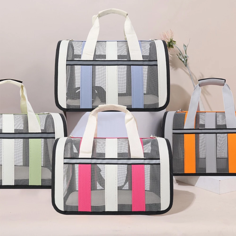 🌈🐱 กระเป๋าสัตว์เลี้ยงแบบพกพา เป็นตัวเลือกที่ยอดเยี่ยมสำหรับเจ้าของสัตว์เลี้ยงที่ต้องการความสะดวกในการเดินทาง มีให้เลือก 4 สี ได้แก่ ชมพู, เขียว, ฟ้าอ่อน และส้ม ขนาดของกระเป๋ามีให้เลือก 2 ขนาดคือ L (48 x 27 x 27 cm) และ M (41 x 27 x 25 cm) น้ำหนักเพียง 0.83 kg สามารถบรรจุสัตว์เลี้ยงได้สูงสุดถึง 7 กิโลกรัม ทำให้เหมาะสำหรับทั้งแมวและสุนัขขนาดเล็ก