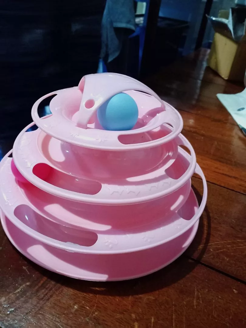 รางบอลกลม 4 ชั้นออกแบบมาเพื่อให้น้องแมวได้ตบบอลเล่นอย่างสนุกสนานและเพลิดเพลินตลอดทั้งวัน ด้วยโครงสร้างที่มีถึง 4 ชั้น น้องแมวจะได้สัมผัสกับความสนุกที่ไม่มีที่สิ้นสุด ขณะที่เล่นบอลในแต่ละชั้น ทำให้มีการกระตุ้นความสนใจและพัฒนาทักษะการล่าเหยื่อของแมวอย่างมีประสิทธิภาพ