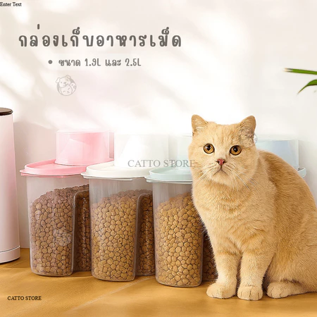 กล่องเก็บอาหารสัตว์เลี้ยงนี้มีฝาปิดแน่น สีพาสเทลน่ารัก ขนาด 1.9L และ 2.5L ทำจากพลาสติก PP ปลอดภัย ช่วยเก็บอาหารเม็ดได้นาน ไม่ชื้น ไม่เหม็น และจัดระเบียบง่าย เหมาะสำหรับบ้านที่มีหลายแมว.