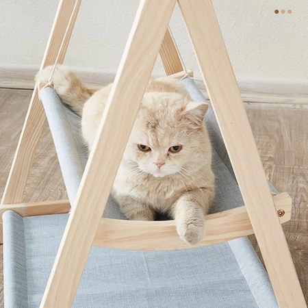 🛋️ ที่นอนแมวชิงช้าไม้มีดีไซน์ที่สวยงามและเรียบง่าย สไตล์มูจิ ทำให้เหมาะกับการตกแต่งบ้านทุกประเภท โครงทำจากไม้แข็งแรง เบาะเป็นผ้าที่แขวนแบบเปล ยกสูงจากพื้น ซึ่งน้องแมวจะชอบเป็นพิเศษ เตียงนี้ไม่เพียงแต่สวยงาม แต่ยังมีฟังก์ชั่นที่ตอบโจทย์การใช้ชีวิตของแมวอย่างแท้จริง
