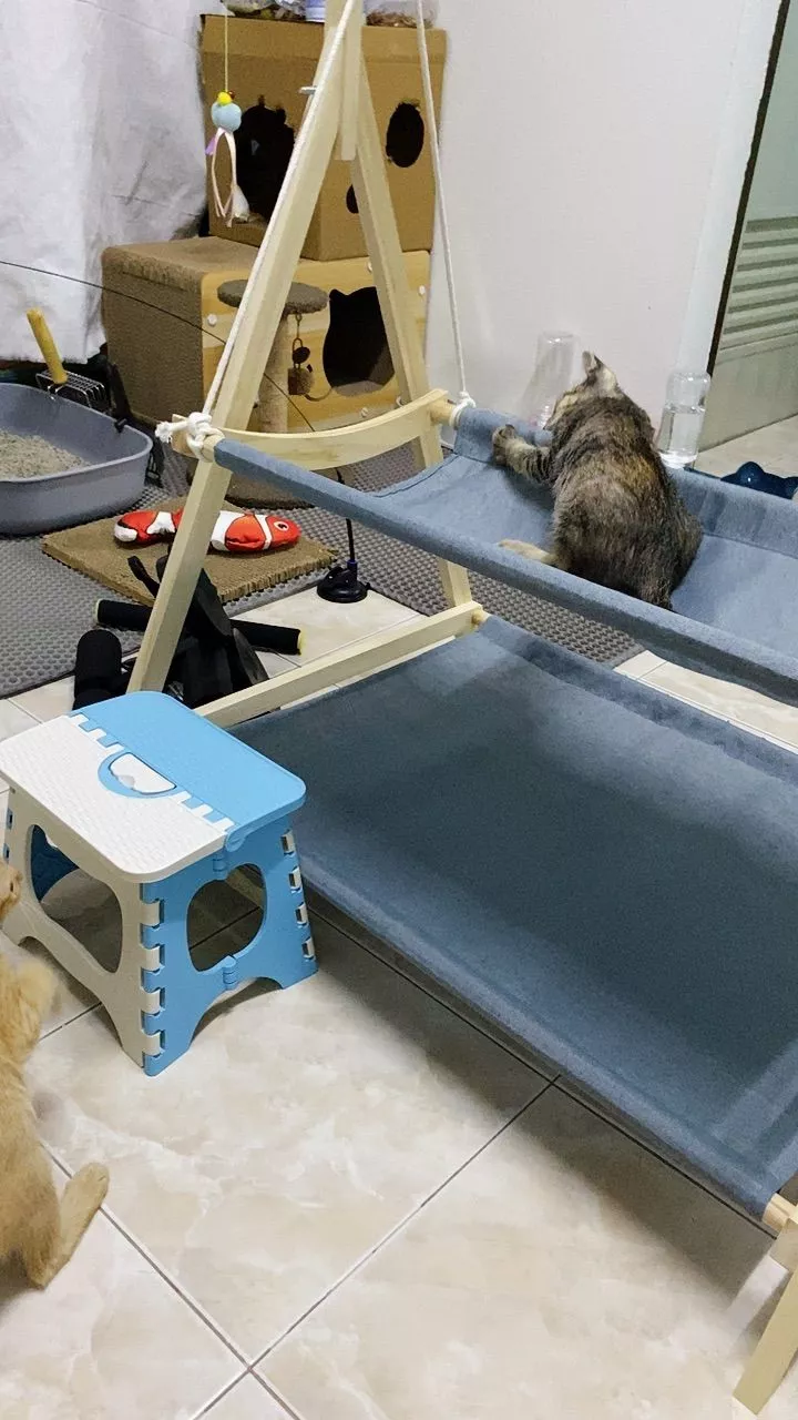 ที่นอนแมวชิงช้าไม้ เบาะผ้าขนาดใหญ่ ราคาถูก ประกอบง่าย มี 2 ขนาด สวยมินิมอล สไตลมูจิ 🐾 เตียงดูดวิญญาณแมว ทำให้ฝันหวานตลอดเวลา!